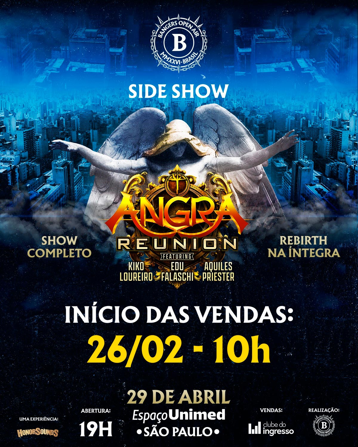 O Angra anuncia um dos momentos mais aguardados de sua trajetória: um show histórico e exclusivo no Espaço Unimed, em São Paulo, no dia 29 de abril de 2026, celebrando em grande estilo os 25 anos de Rebirth — o álbum que redefiniu o destino da banda e marcou uma geração inteira de fãs do metal brasileiro e mundial.