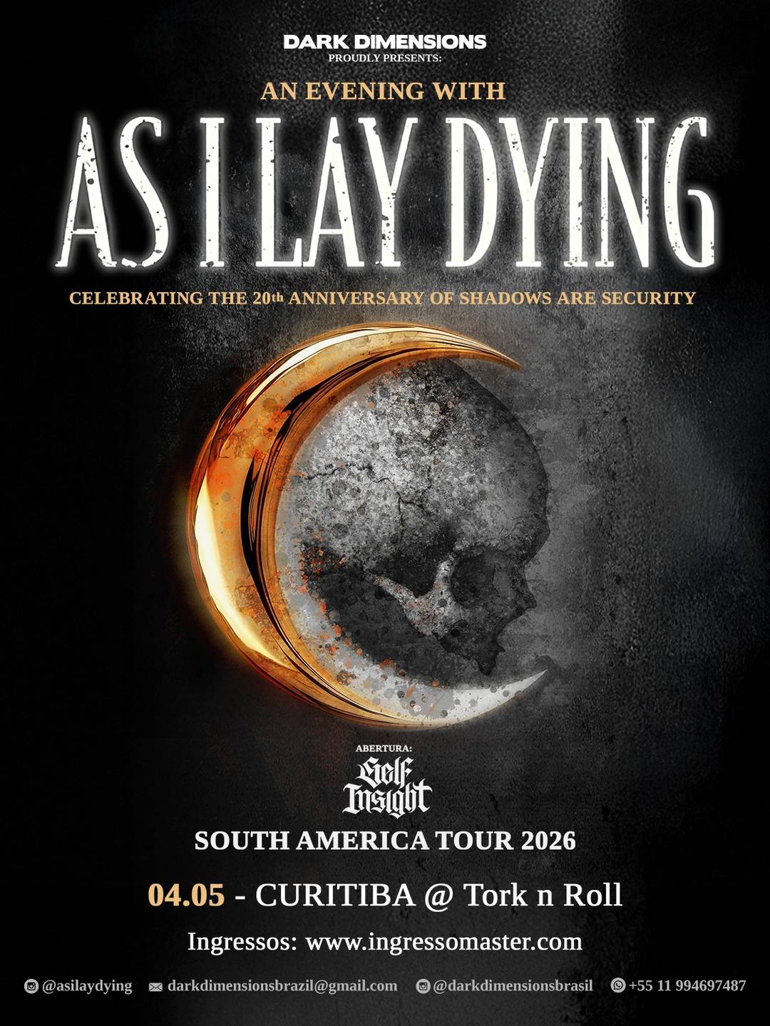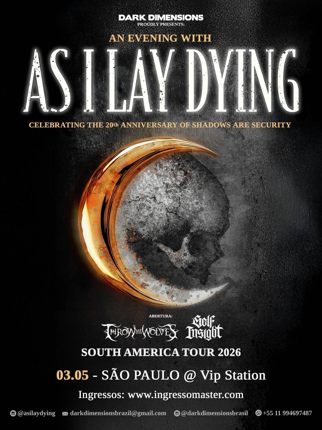 ​A um mês dos dois shows confirmados no Brasil — em São Paulo (03/05, Vip Station) e Curitiba (04/05, Tork N’ Roll), com realização da produtora Dark Dimensions e ingressos disponíveis pela plataforma Ingresso Master (https://ingressomaster.com) —, a As I Lay Dying inicia um novo capítulo de sua trajetória, marcado por reconstrução, reposicionamento e tentativa de reafirmação dentro do cenário global. A passagem pelo país integra a turnê sul-americana “An Evening With As I Lay Dying”, que também contempla datas em Lima, Peru (27/04), Santiago, Chile (29/04) e Buenos Aires, Argentina (01/05), consolidando o giro como um dos mais aguardados do metalcore em 2026.​