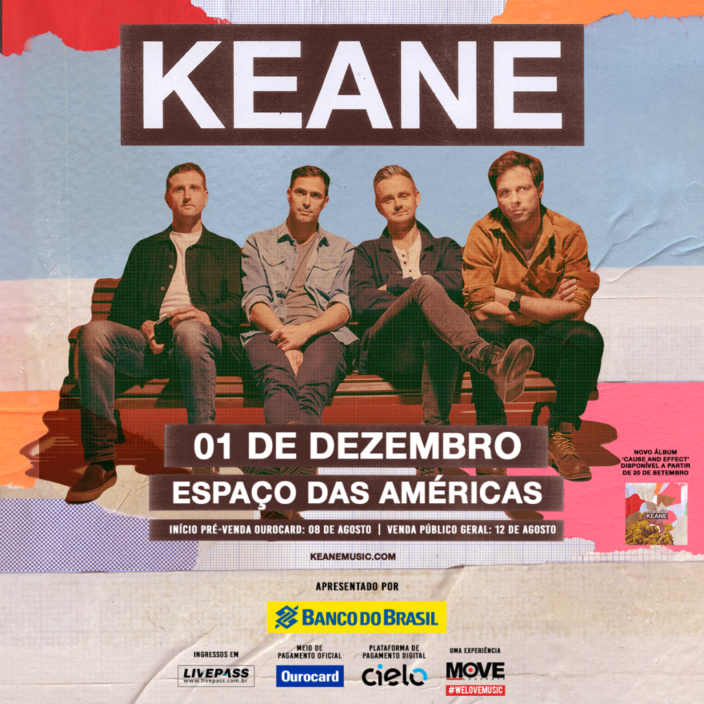 Esta será a única performance da aclamada banda, que conta com Tim Rice-Oxley (piano/teclado, sintetizador), Tom Chaplin (vocal/guitarra), Richard Hughes (bateria) e Jesse Quin (baixo), para promover o novo álbum “Cause and Effect” no País.