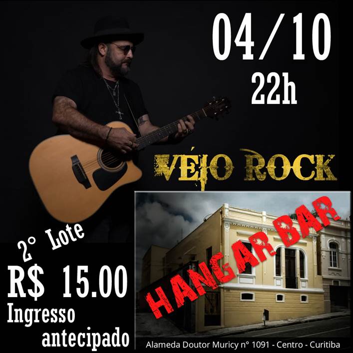 Uma das casas mais importantes de Curitiba, o “Hangar a Casa do Ócio”, recebe pela primeira vez o músico e compositor Vagner Luiz, que com a alcunha de Veio Rock, leva seu trabalho autoral para a capital curitibana com convidados.