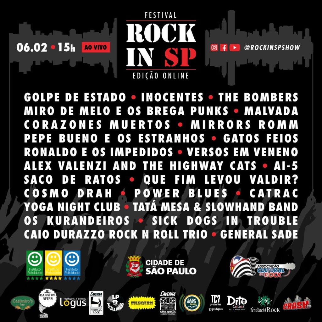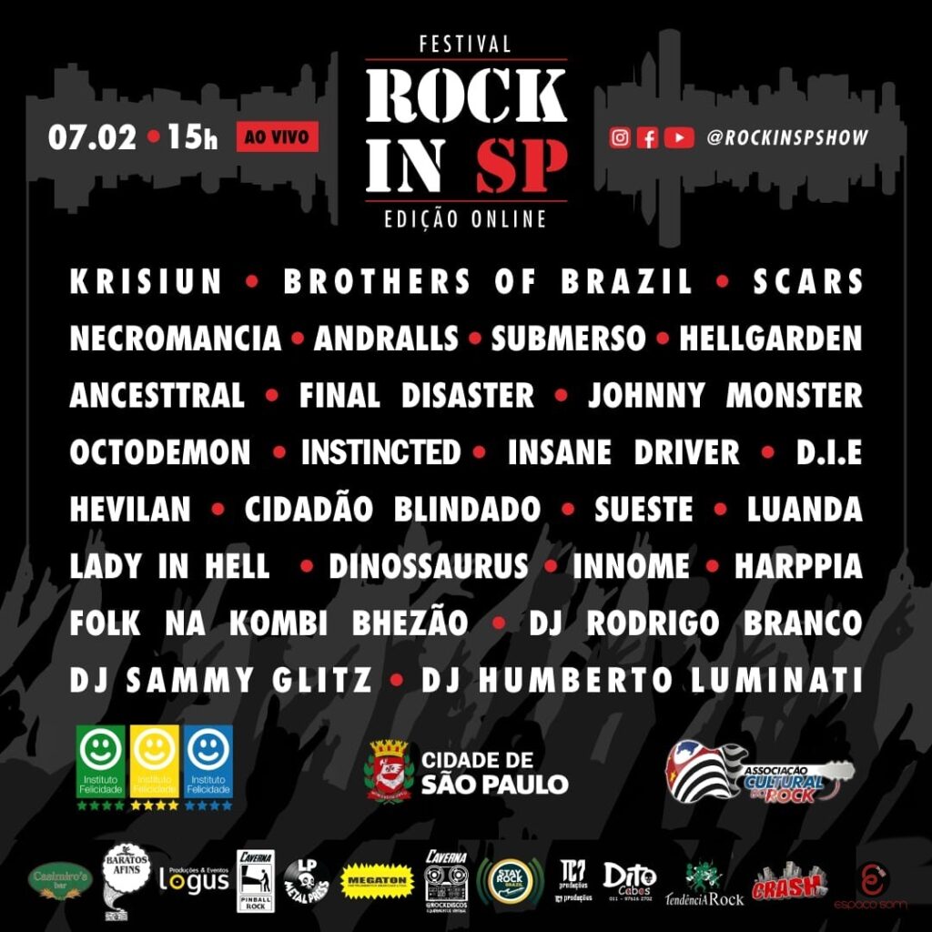 Nos dias 06 e 07 de fevereiro (sábado e domingo), acontece a edição online do festival Rock In SP, com 50 atrações entre bandas e DJs, do Rock ao Metal, passando por vários estilos.