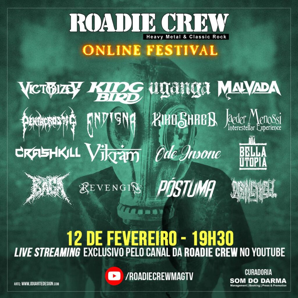 A revista Roadie Crew, em parceria com a produtora Som do Darma, apresentam nesta sexta-feira, dia 12 de Fevereiro, às 19h30, a décima-primeira edição do “Roadie Crew – Online Festival”.