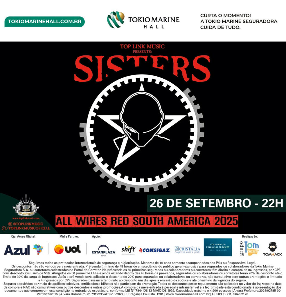 Ingressos: https://www.passline.com/eventos/the-sisters-of-mercy-all-wires-red-south-america-2025