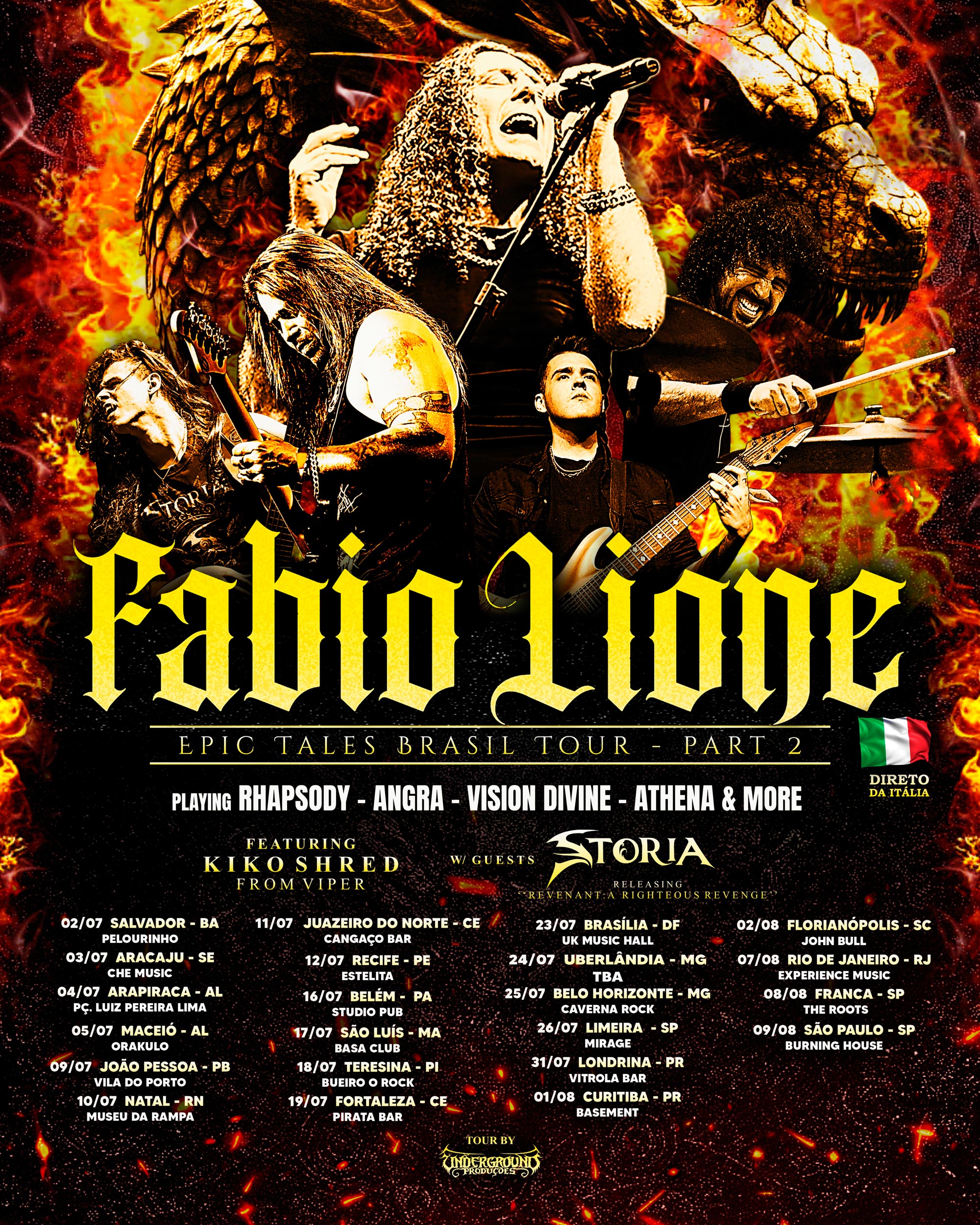 Para o Storia, dividir a estrada com Fabio Lione também tem peso simbólico e artístico: “Fabio Lione é uma das vozes mais icônicas do metal mundial, e fazer parte dessa turnê ao seu lado é uma honra para a Storia. Essa tour também representa a oportunidade perfeita de levar nossa música e o álbum ‘Revenant: A Righteous Revenge’ a diferentes regiões do país. Estamos animados para reencontrar nossos fãs e conquistar novos públicos ao longo dessa jornada”.