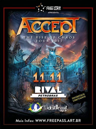 Informações sobre ingressos, locais, horários e demais em http://freepass.art.br/shows/accept-no-brasil-2017/