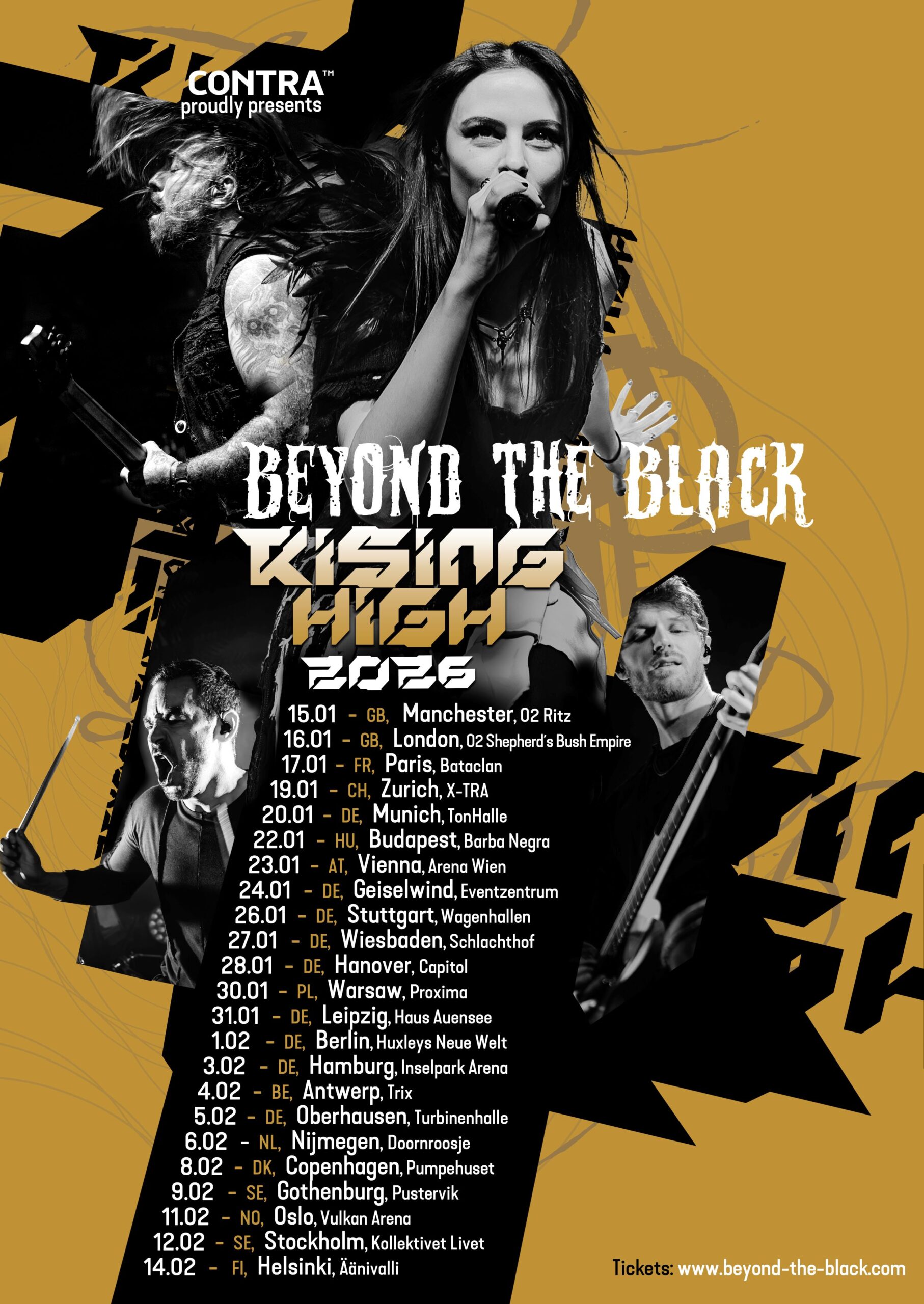 A banda alemã de metal sinfônico BEYOND THE BLACK se tornou uma das forças mais emocionantes do metal sinfônico moderno, trilhando um caminho impressionante desde sua formação. Tudo começou com seu álbum de estreia em 2015: Songs Of Love And Death foi um sucesso instantâneo, permanecendo entre os 15 álbuns mais vendidos na Alemanha por semanas e recebendo o prêmio Metal Hammer Award de “Melhor Estreia”. Seu sucessor, Lost In Forever (2016), alcançou o 4º lugar nas paradas alemãs e abriu caminho para uma grande turnê pela Alemanha, Reino Unido, Rússia e Japão. Desde sua estreia ao vivo em 2014, a banda já se apresentou nos maiores festivais de metal do mundo, como o Wacken Open Air, e abriu shows para grandes nomes do metal internacional, como AEROSMITH, KORN, SCORPIONS, SAXON e WITHIN TEMPTATION.