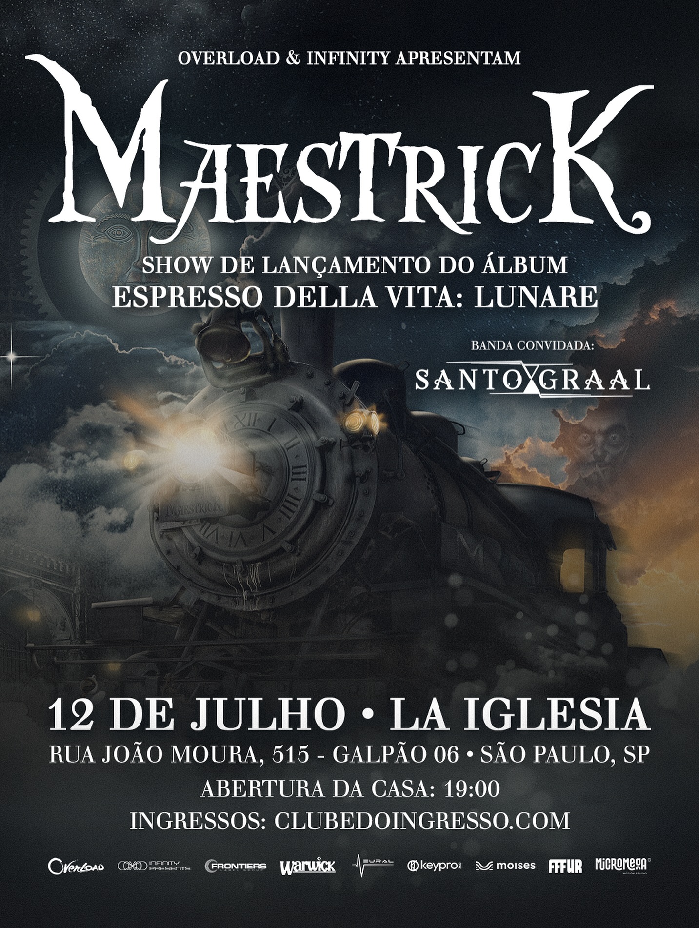 Aclamada por sua ousadia e criatividade, a banda brasileira de metal progressivo Maestrick celebrará o lançamento de seu novo álbum, Espresso Della Vita: Lunare, com um show especial no dia 12 de julho, em São Paulo. O evento acontece na casa La Iglesia, e contará com a participação da banda convidada Santo Graal.