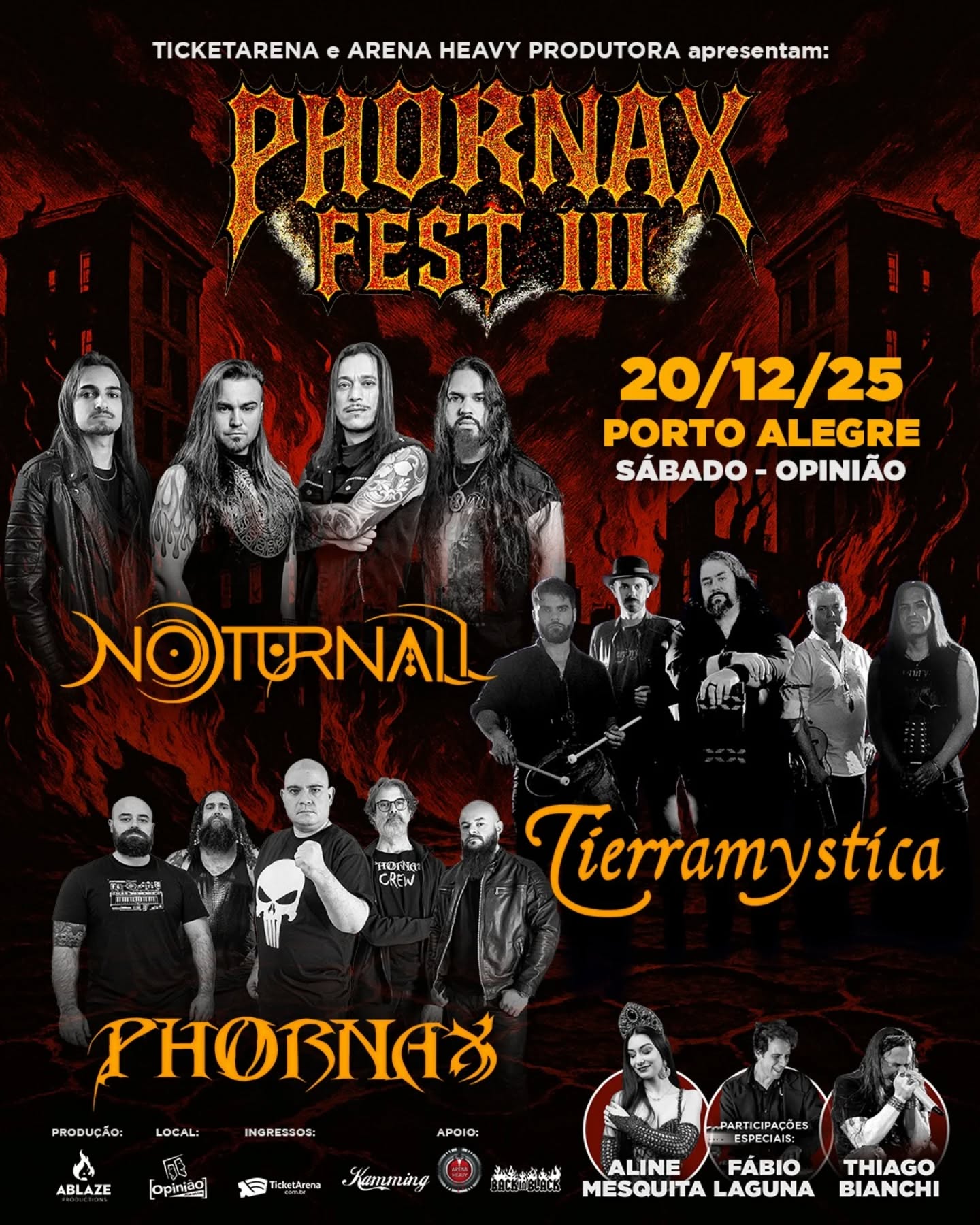 O Opinião, um dos palcos mais tradicionais do rock gaúcho, será o cenário da terceira edição do PHORNAX FEST, que acontece no dia 20 de dezembro (sábado) em Porto Alegre. O evento, idealizado e liderado pela banda Phornax, se firma como um dos principais festivais do Metal gaúcho, reunindo grandes nomes da cena brasileira em uma noite épica. O evento conta com a realização da Ablaze Productions e da Arena Heavy Produtora, produção da Ticket Arena e apoio da Kamming, BackinBlack, MetalSulRS.