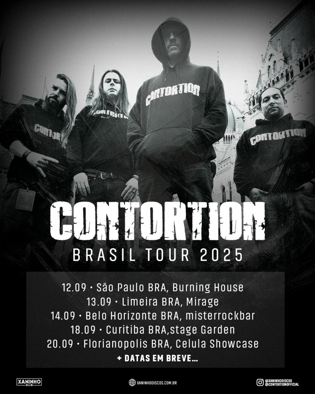NEW DEMOCRACY – Formada em 2012, em Varginha (MG), a banda se destaca no cenário nacional com sua fusão de Melodic Death Metal e Groove Metal, unindo peso, técnica e atmosferas épicas. Suas letras abordam críticas sociais e temáticas históricas, e sua discografia inclui dois EPs — A New Concept for You to Meet (2014) e Disgrace to the Family (2017) — e dois álbuns completos — Death Possession (2019) e o conceitual The Plague (2022), ambientado no Antigo Egito. A formação atual conta com Rafael Lourenço (vocal e guitarra), Fabrício Fernandes (guitarra solo), Marcus Vinícius (baixo), Vinicius “Banzai” Borges (teclados) e Iago “Basturk” Alves (bateria). Reconhecida por apresentações intensas e envolventes, a New Democracy representa com força e autenticidade o metal mineiro contemporâneo.