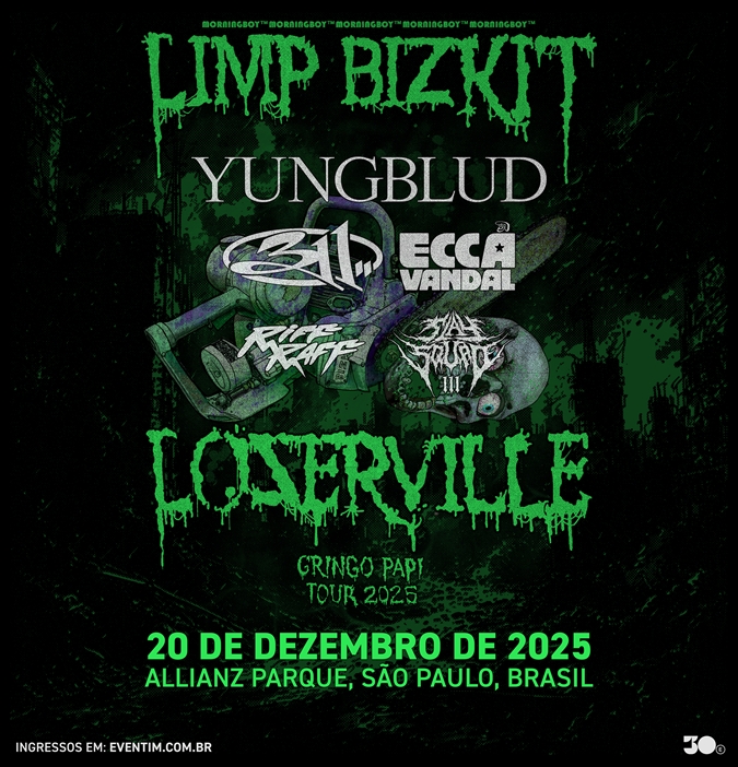 “Welcome to the jungle, punk, take a look around. It’s Limp Bizkit…”, (Bem-vindo à selva, punk, dê uma olhada. É o Limp Bizkit…). O trecho de “My Generation” (2000) traduz a energia caótica e intensa das performances do grupo Limp Bizkit na LOSERVILLE TOUR 2025, projeto do frontman Fred Durst que passou pelos Estados Unidos e pela Europa nos últimos meses. Agora, a turnê, que tem participação de YUNGBLUD, 311, Ecca Vandal, Riff Raff e Slay Squad, finalmente ganha data única no Brasil no dia 20 de dezembro, no Allianz Parque, em São Paulo. O evento é uma realização da 30e, maior companhia brasileira de entretenimento ao vivo, e terá venda de ingressos a partir do dia 6 de agosto ao meio-dia no site da Eventim (acesse aqui).