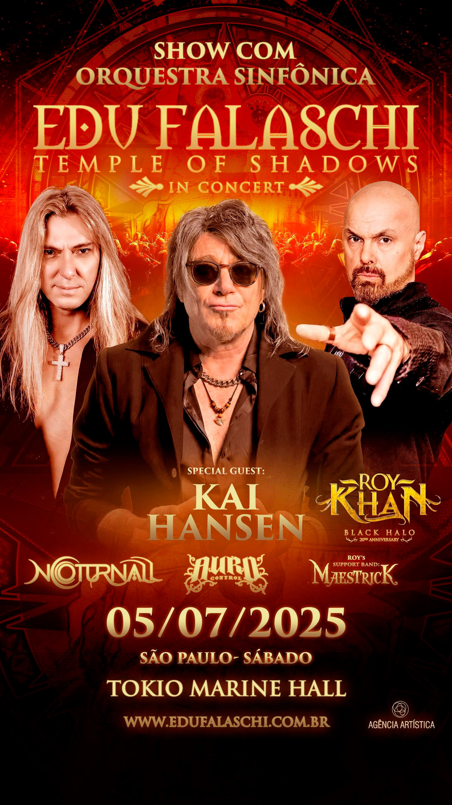 Um dos nomes mais influentes do power metal mundial está de volta ao Brasil. Kai Hansen, fundador das icônicas bandas Helloween e Gamma Ray, será o convidado especial do espetáculo Temple of Shadows in Concert, de Edu Falaschi, que acontece no dia 5 de julho de 2025, no Tokio Marine Hall, em São Paulo.
